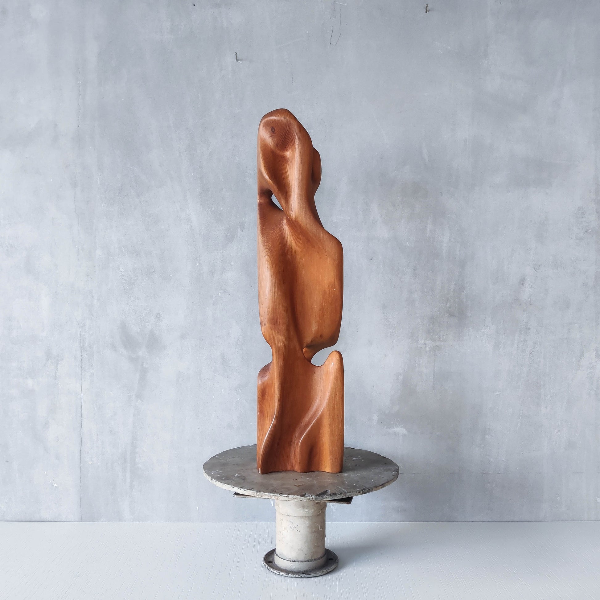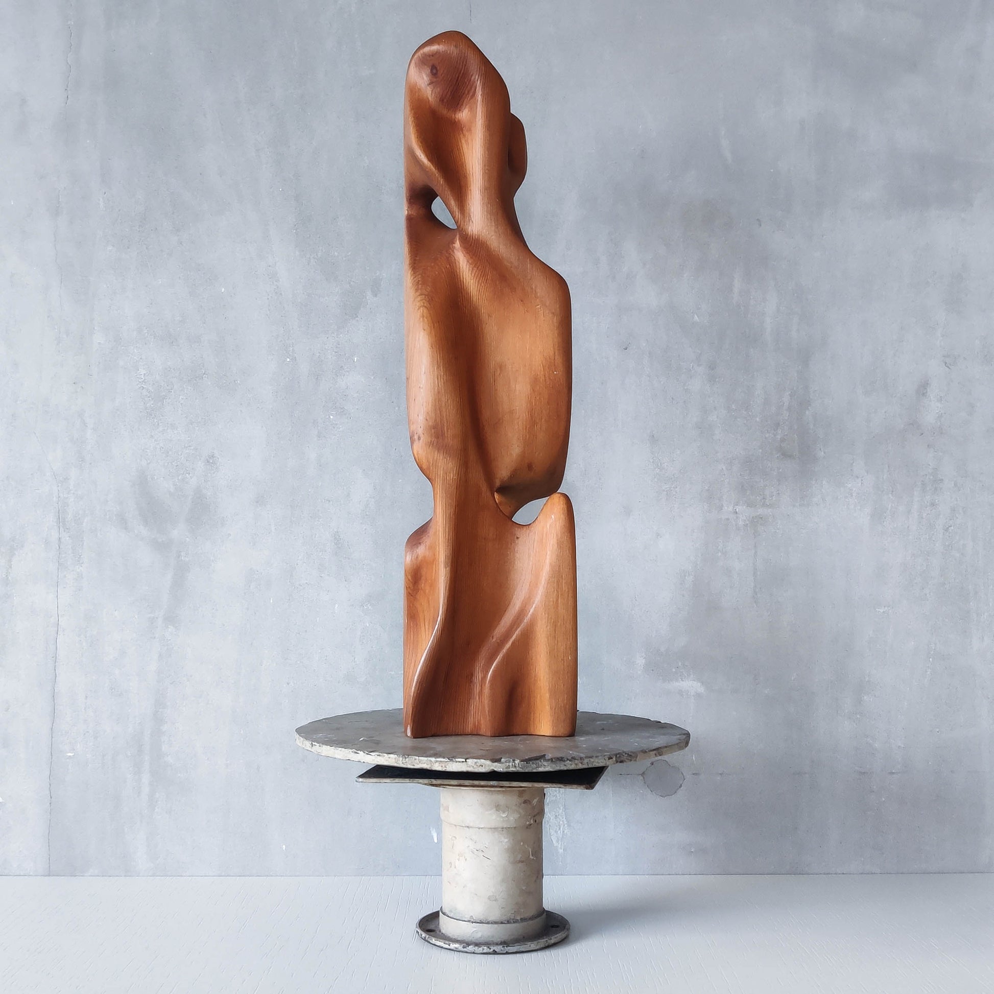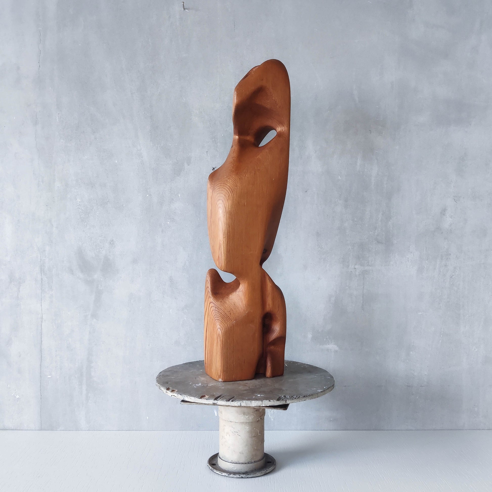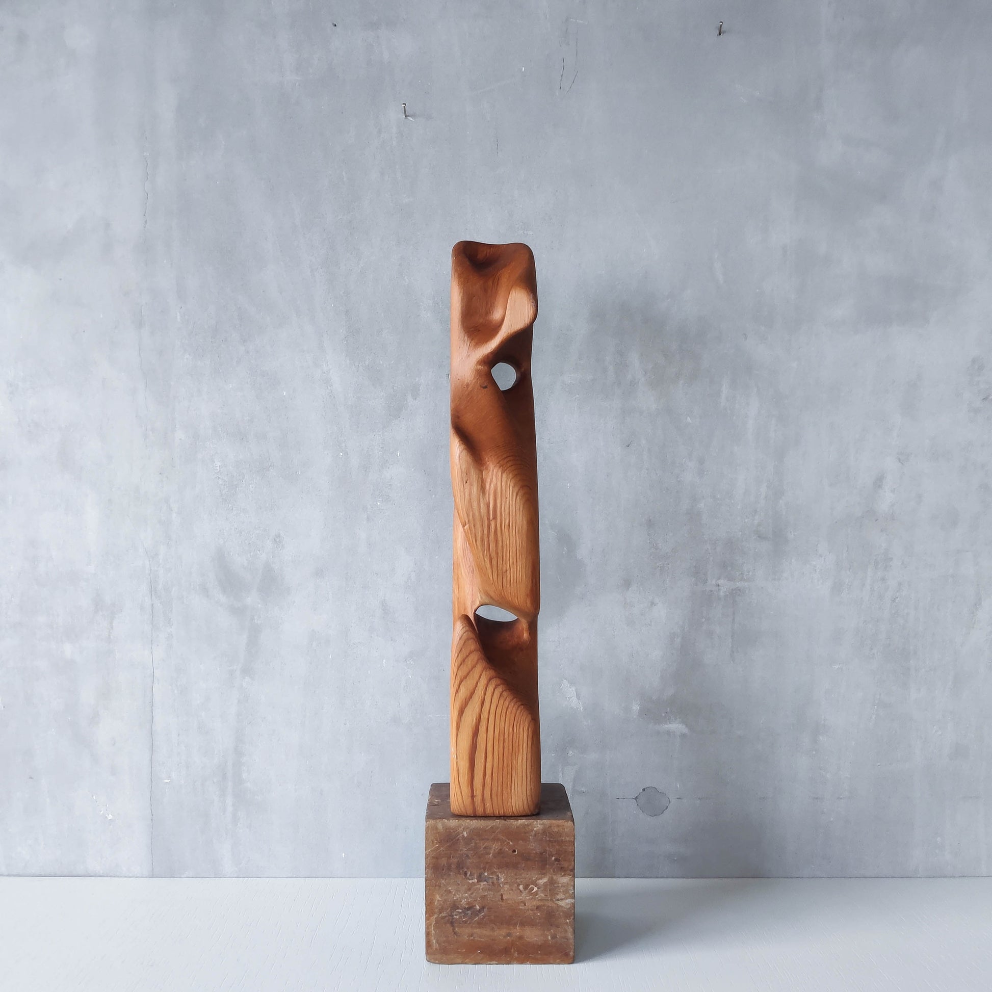 Carved wooden vintage abstract totem sculpture. Freeform abstract in form. Please note: base/plinths not included. Well made and considered. Great colour. Artist unknown. Please see photos and condition description.