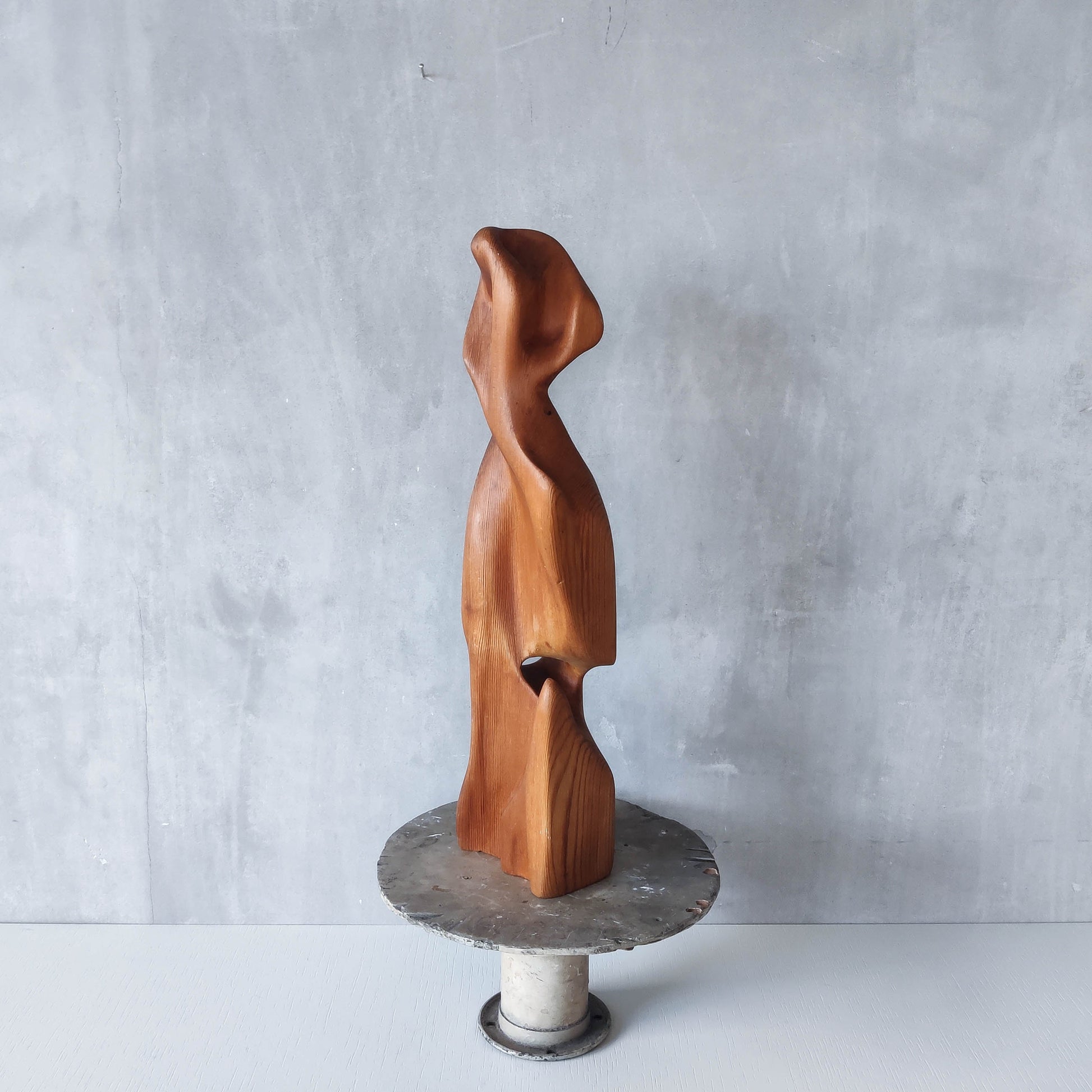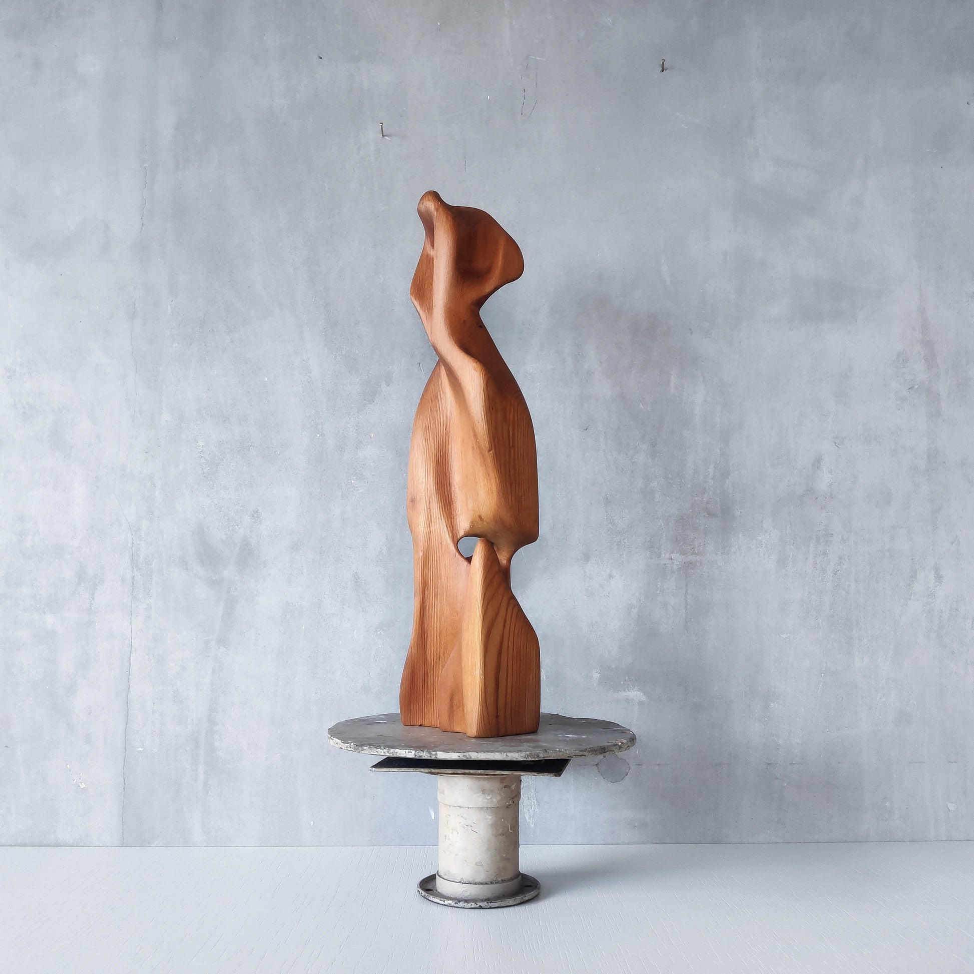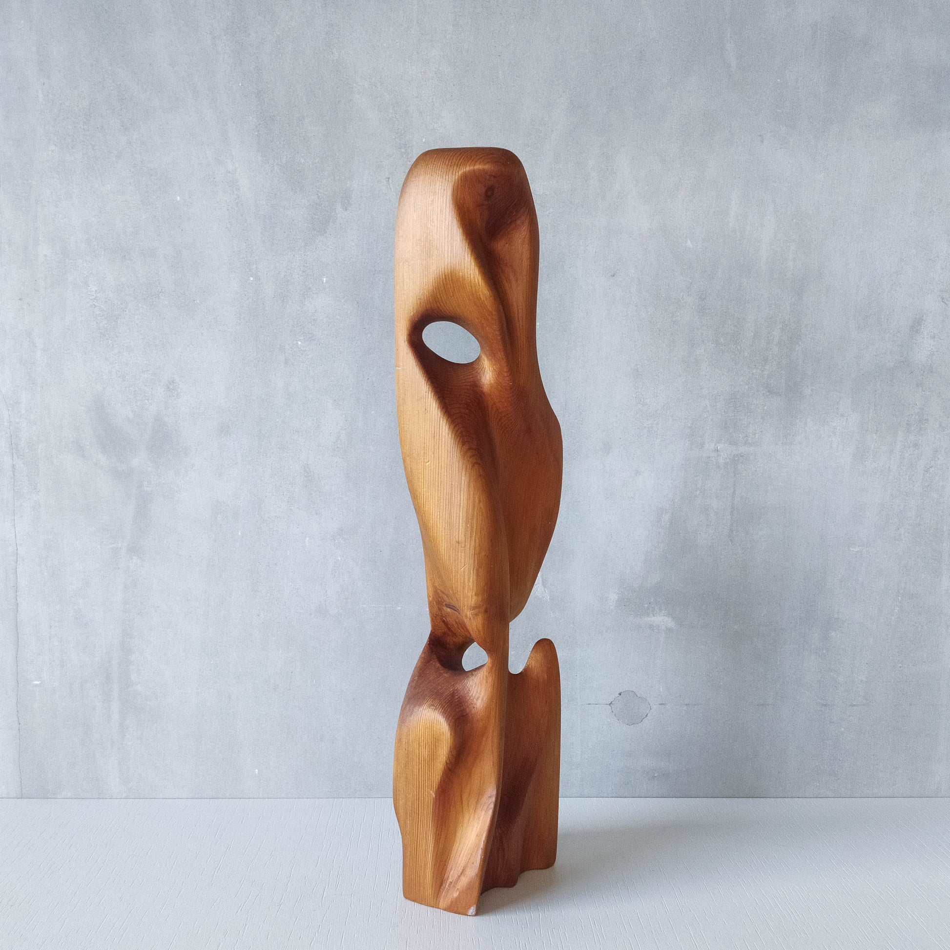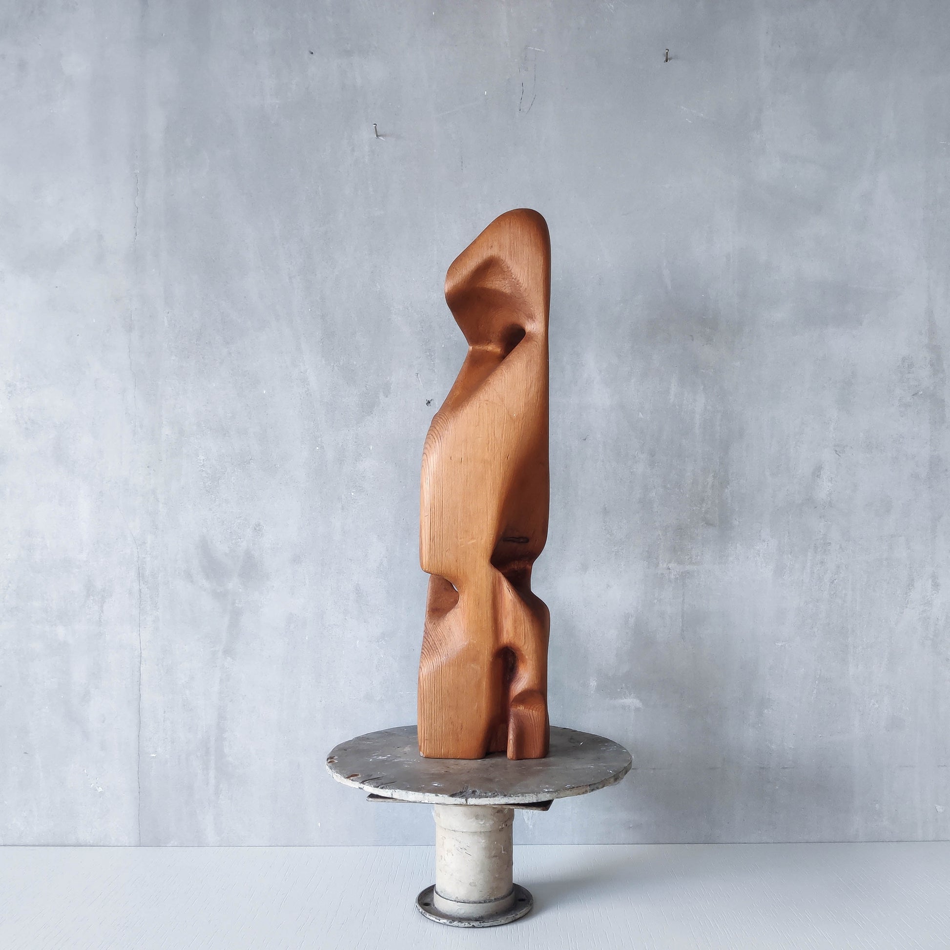 Carved wooden vintage abstract totem sculpture. Freeform abstract in form. Please note: base/plinths not included. Well made and considered. Great colour. Artist unknown. Please see photos and condition description.
