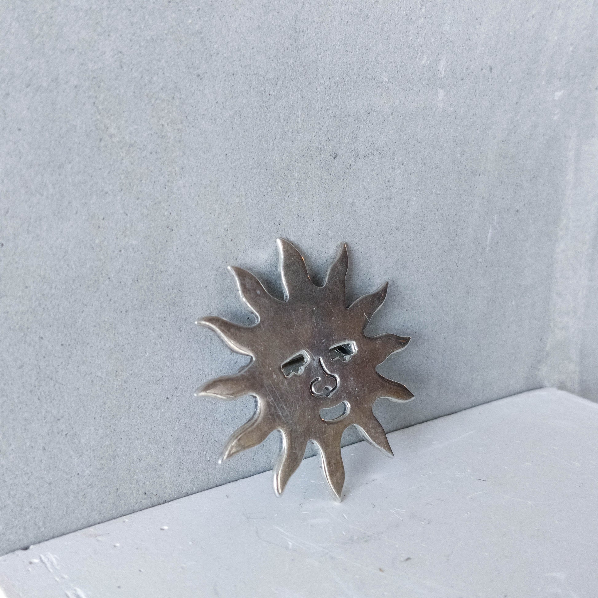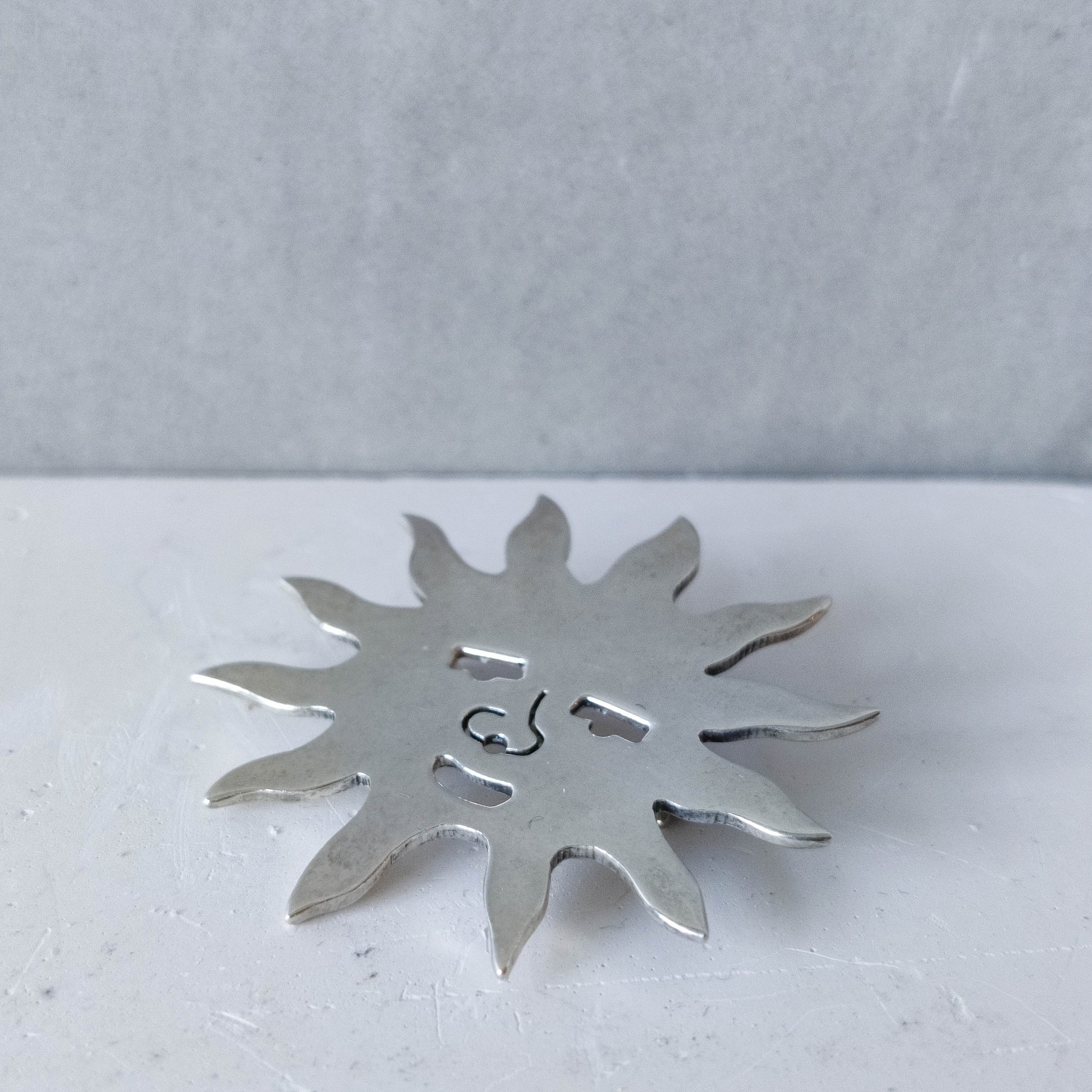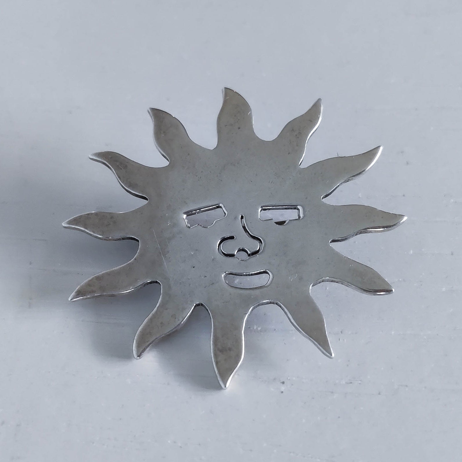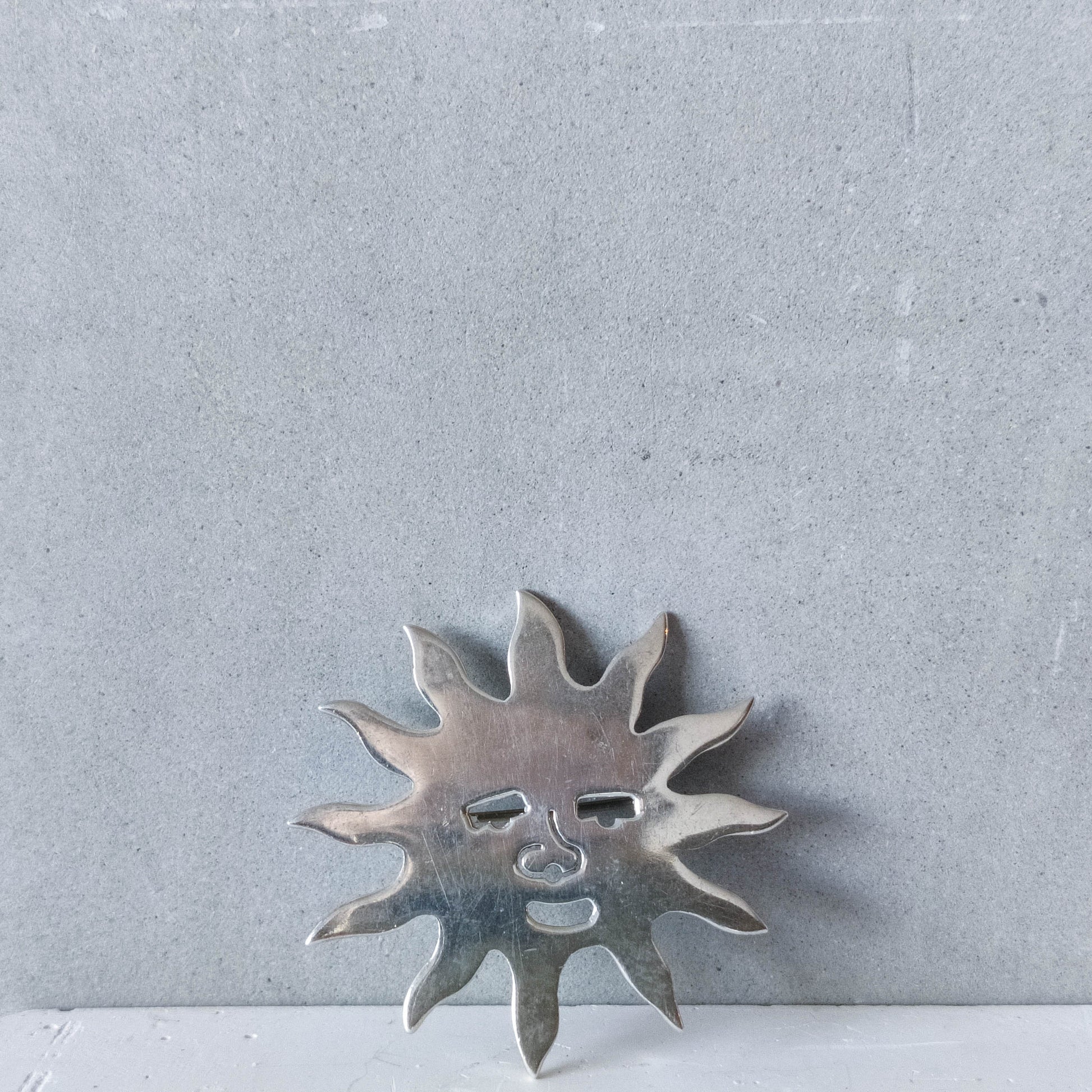 Charming vintage Mexican sterling silver (I believe it is stamped 925 or 920 although inscription is unclear, it does polish like silver) sun face brooch. Please see photos and condition description.