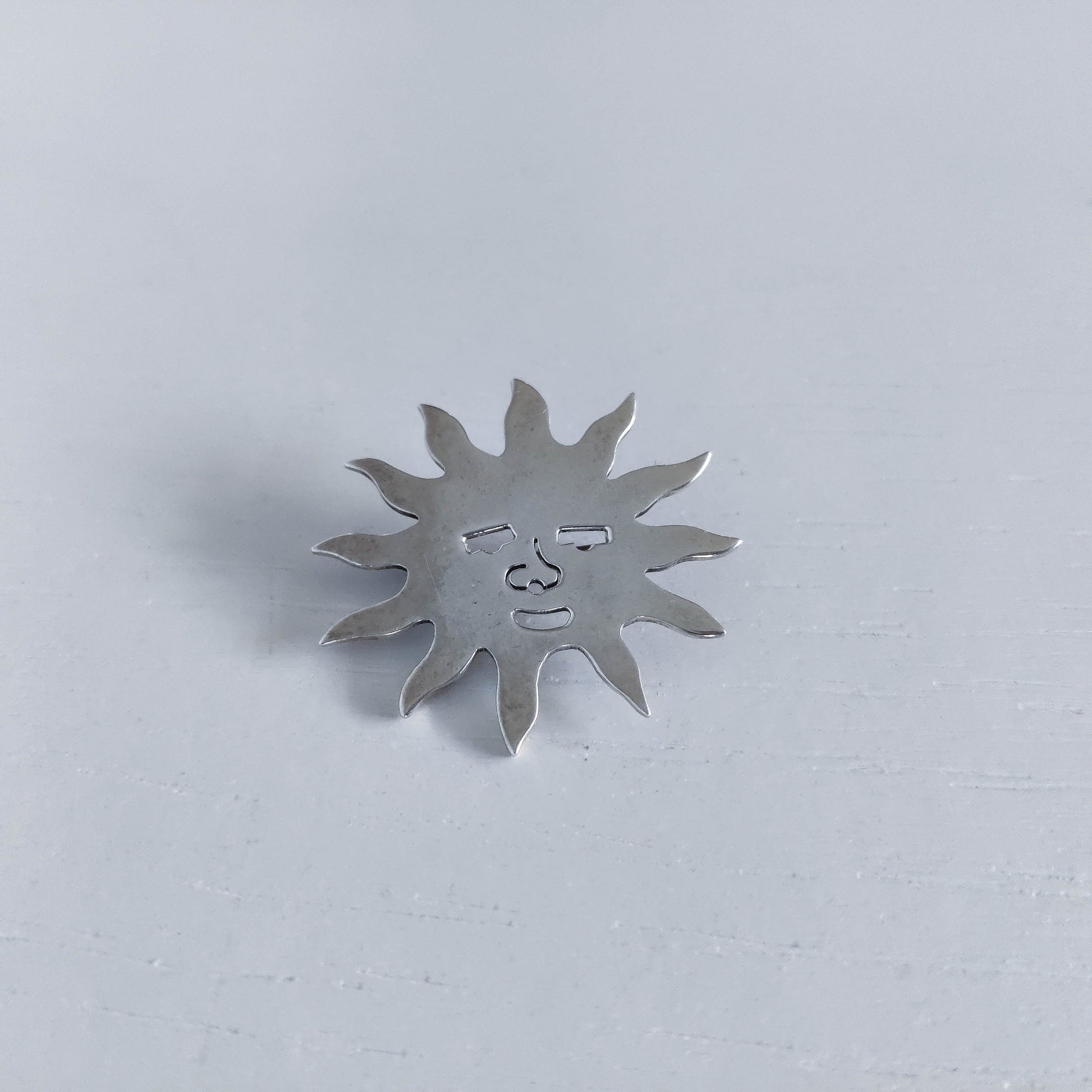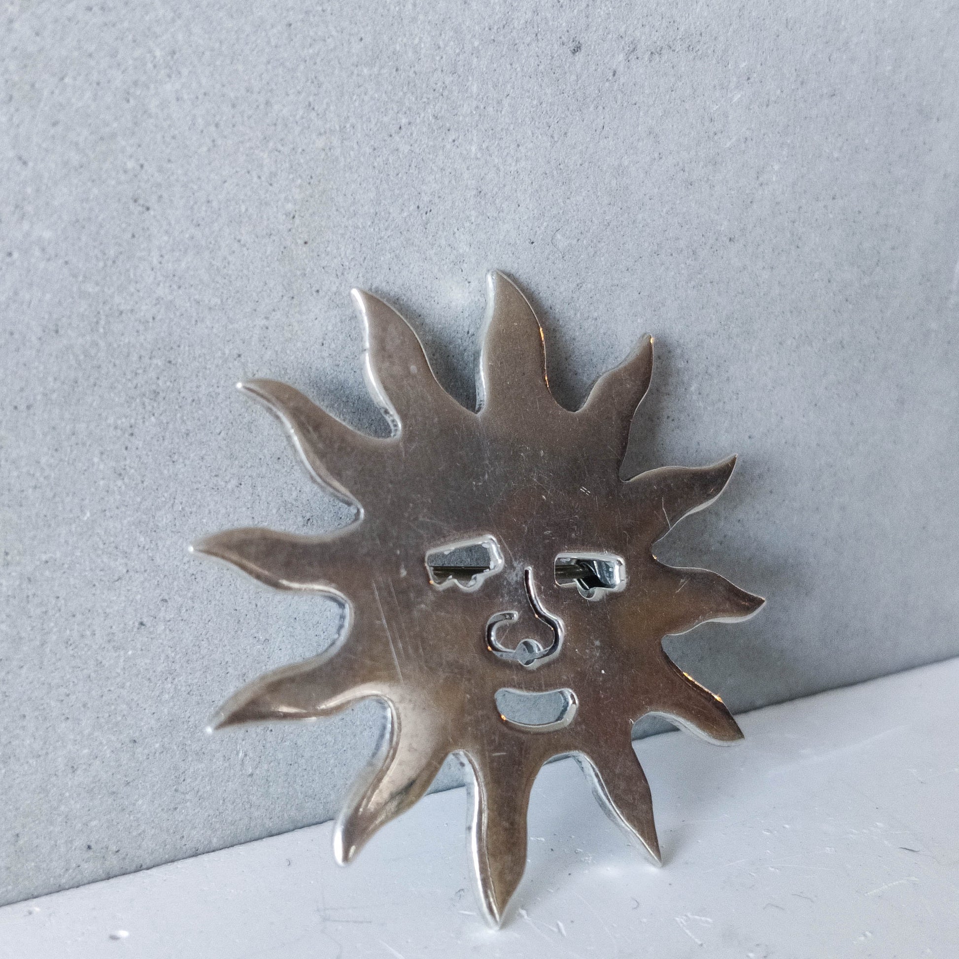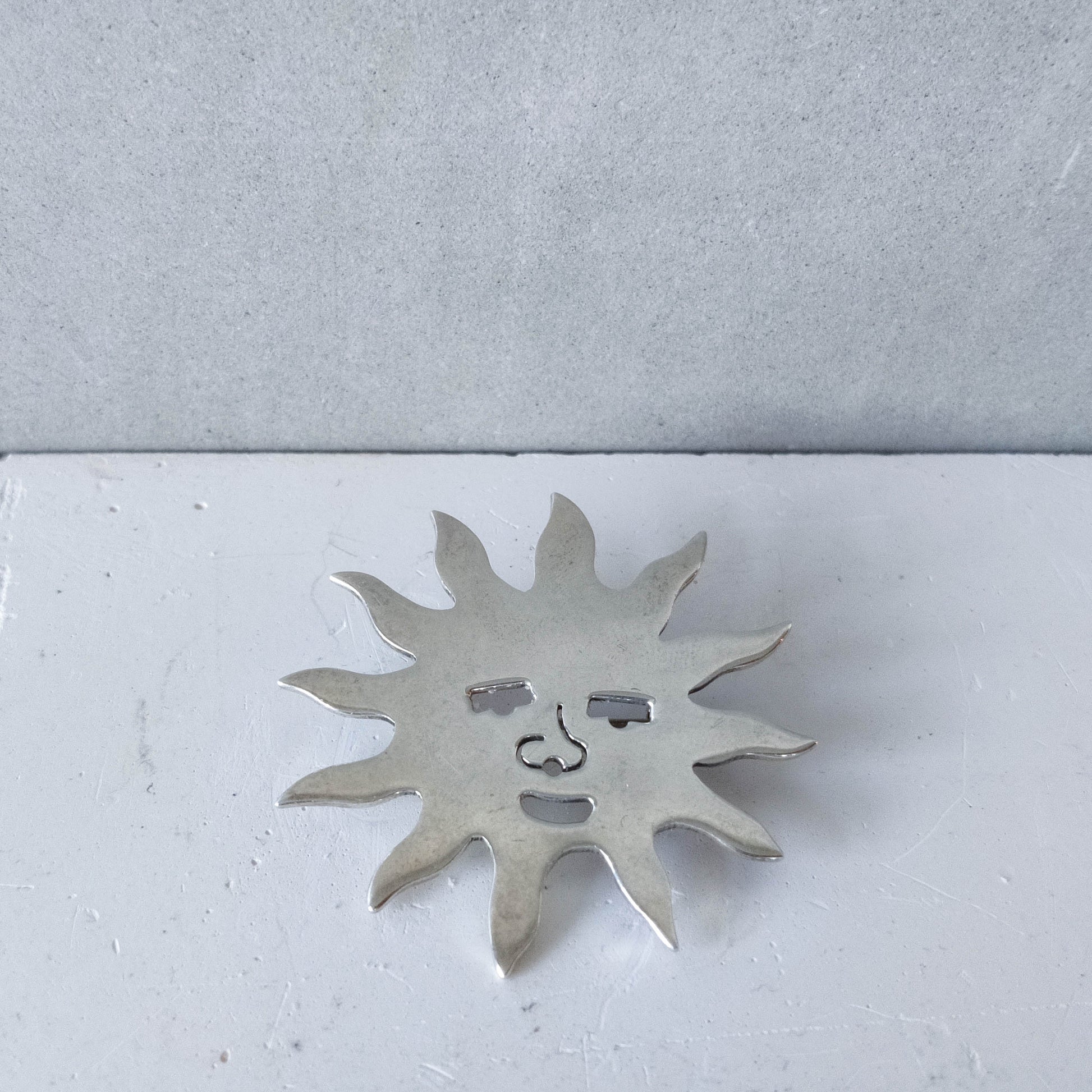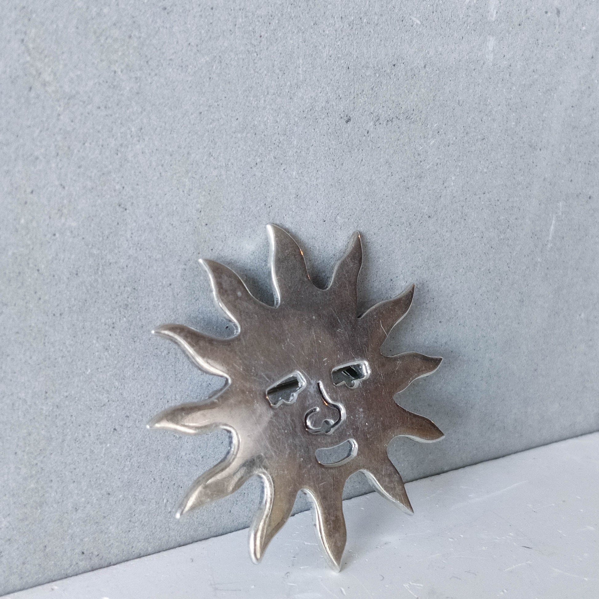 Charming vintage Mexican sterling silver (I believe it is stamped 925 or 920 although inscription is unclear, it does polish like silver) sun face brooch. Please see photos and condition description.